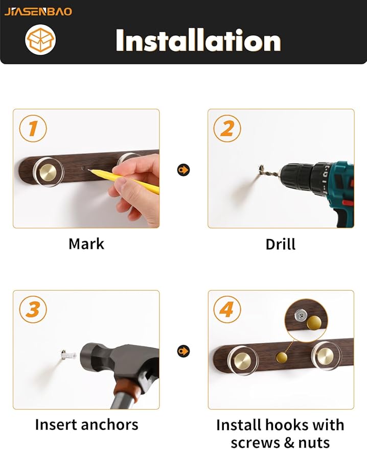 - Drilling Install : Install the coat racks with screws and expansion tubes (included) ideal for hanging towel, coat, robe, hat, bag, backpack