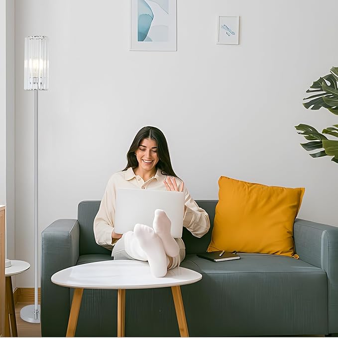- 【Charming Crystal Lampshade】:This corner floor lamp is made of high-quality metal material and clear crystal shade, while the design highlights the unique appearance of the chrome floor lamp. The clear crystal shade brings 360° light illumination to the room. Whether it's your living room or bedroom, corner, office, etc, this silver floor lamp can be your elegant lighting decoration.