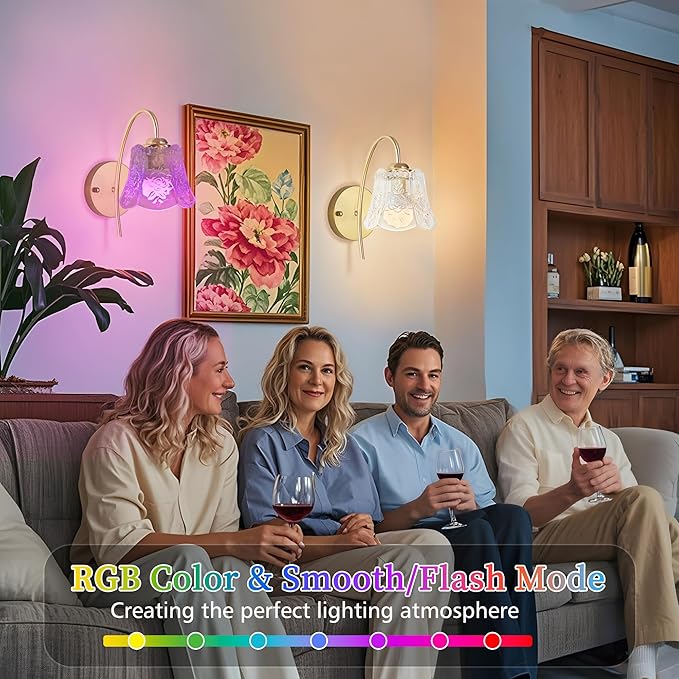 - 【Widely Application】The glass flower wall sconce is great for home indoor decoration to create a touch of brilliance to your residence, which is an excellent idea for your bathroom Bedroom mirror kitchen,dining room,living room, corridor,cafe,basement,bar,club,office,and library