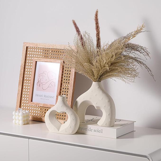 - Modern Boho Aesthetic: Premium white ceramic vases featuring minimalist boho design, perfect decorative flower vases for contemporary living room, bedroom, or office spaces that elevate your home decor style