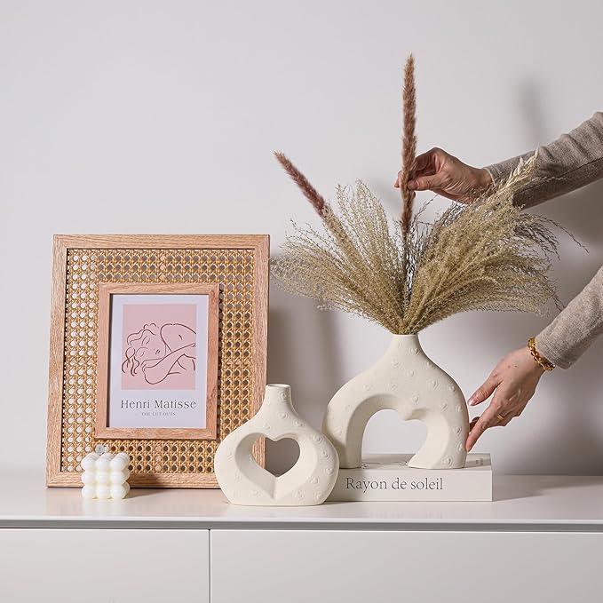 - Versatile Centerpiece Set: Two uniquely shaped ceramic flower vases ideal for fresh flowers, dried arrangements, pampas grass, or standalone decor. Perfect vase decor for coffee tables, shelves, or dining centerpieces