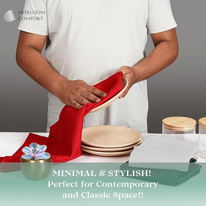 - SUPER ABSORBENT & QUICK DRY: The waffle weave design enhances absorbency, soaking up spills efficiently and drying quickly to stay fresh and ready for use.