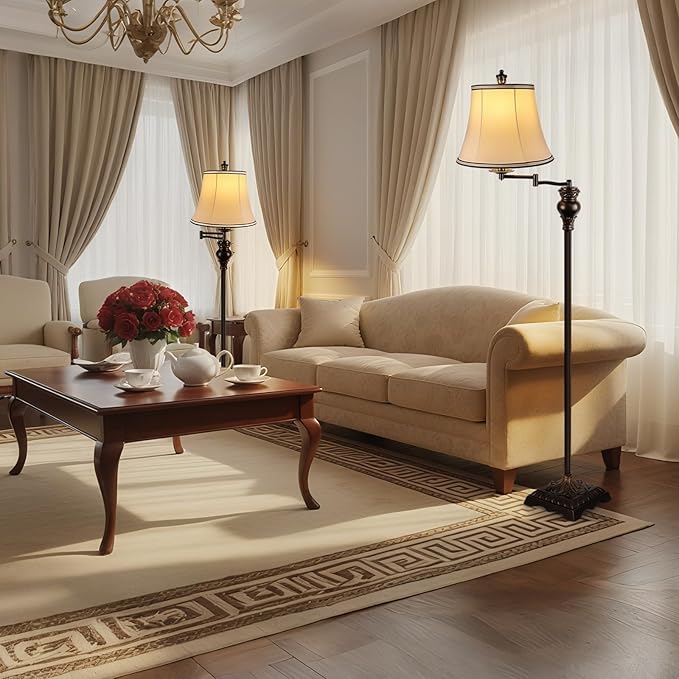 - Portable and 350° Adjustable Swing Arm: With a 350°adjustable swing arm, this floor lamp for living room offers maximum flexibility. You can easily direct the light exactly where you need it, whether for reading, working, or simply adding a cozy glow to your space