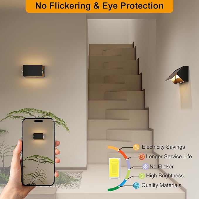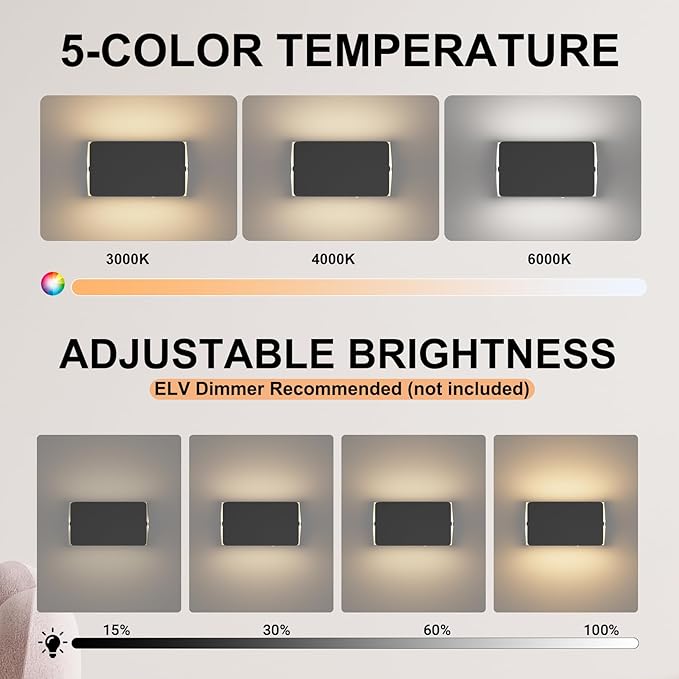 - 5 Color Temperatures Adjustable: Built-in 2700K warm yellow light, 3000K warm white light, 4500K natural light, 5000K positive white light and 6000K cold white light five color temperature modes, which can meet the needs of different scenes. Whether it is the cozy atmosphere of the bedroom or the bright environment of the study, this led wall light can be perfectly adapted.