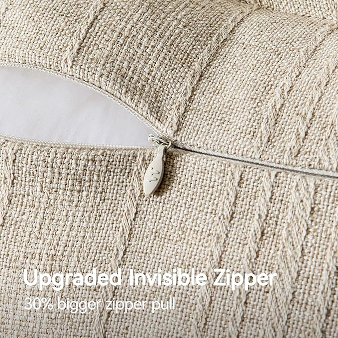 - Boho Striped Linen Pillow Covers: Featuring textured stripes and decorative flange edges, these linen covers have reinforced seams with heavy-duty stitching. The boho-inspired design adds visual interest through subtle stripes while maintaining a clean, modern look.