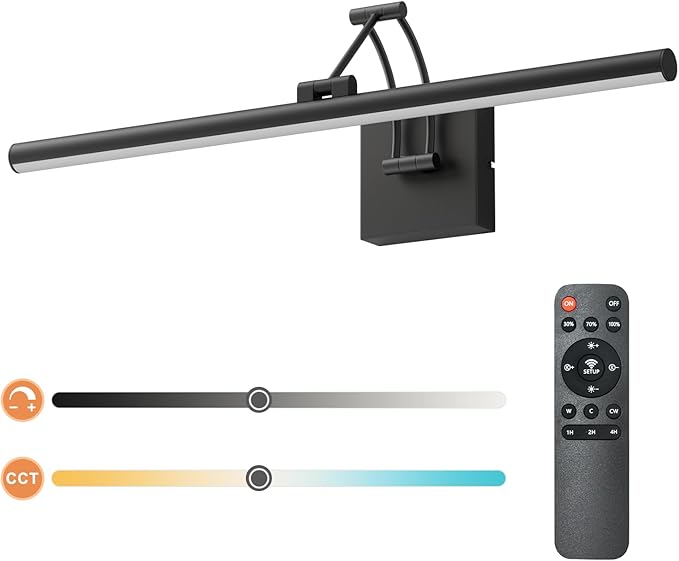 - [3CCT & Dimmable & Timer Function]:Hard-wired picture lights foll wall come with a remote to activate dimmable and timer function.The art light for painting with 3CCT,adjust to your favorite light color and brightness to add more beauty to your home.