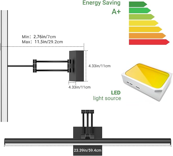 - [High CRI & Shinning Pictures]:The classic LED picture frame light offers a Color Rendering Index (CRI) of 90+.This led picture light will bathe your art in natural-looking light,illuminating every detail and breathing life into every piece.Our art lamps emit very minimal heat and harmful UV output,ensuring the longevity of your precious artwork.