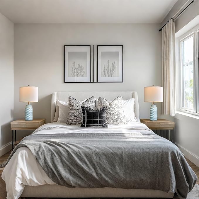 20.5" Light Blue Modern Ceramic Bedside Lamp Set of 2 for Bedroom Decor Farmhouse Table Lamp for Living Room Office Dorm