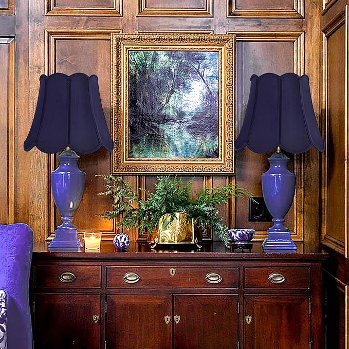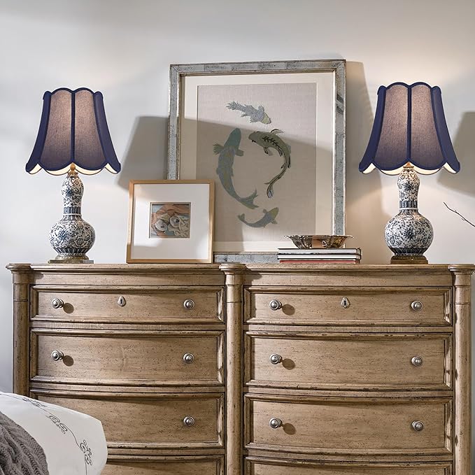 - Scalloped-shaped Shade Size: Medium blue lamp shade, 8×13×11 Inch (8" top diameter, 13" bottom diameter, 11" vertical height). Suitable for most table lamps, bedside lamps,floor lamp and nightstand lamp for bedroom, living room