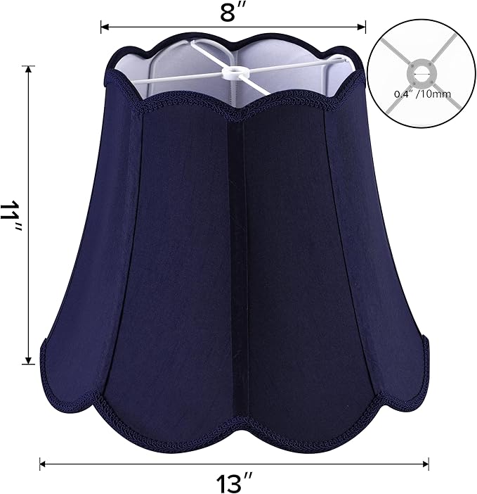 - Medium Scalloped Shade Size: Medium blue lamp shade, 8×13×11 Inch (8" top diameter, 13" bottom diameter, 11" vertical height). Suitable for most table lamps, bedside lamps,floor lamp and nightstand lamp for bedroom, living room