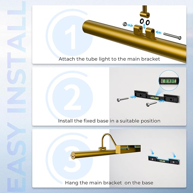 - 【Tailored Illumination for Your Artwork】This mural light isn’t just a fixture—it’s a partner for your art. Equipped with a 13-inch light tube, it casts broad, even glow to highlight every detail of your paintings or wall decor. What sets it apart? Dimmable brightness (20%-50%-100%) and 3 adjustable color temperatures—warm, cool, or neutral. Whether you want soft ambiance for a vintage oil painting or crisp light for a modern print, you’ve got the flexibility to make your artwork shine exactly how you want it. No more one-size-fits-all lighting—this light adapts to your vision.