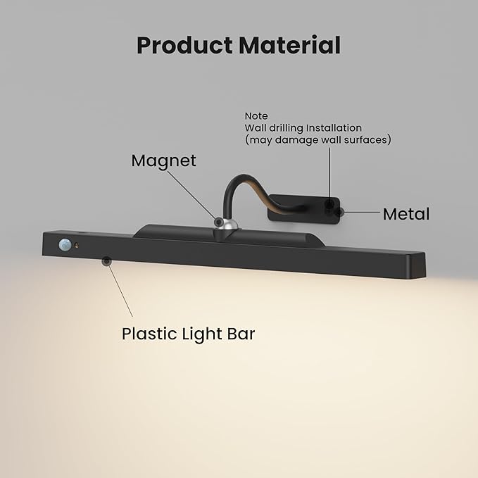 - 【Dual Lighting Modes for Flexibility】✅Motion Sensor Mode: Energy-saving for hallways or low-traffic areas.✅Always-On Mode: Perfect for all-night displays in living rooms or galleries.
