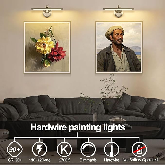 - Energy-Efficient LED Technology: Equipped with built-in LED chips, the picture lights for paintings are more energy-efficient compared to traditional bulbs. This Led wall art light is an ideal choice for illuminating family portraits, canvas art, gallery displays, or any other decorative elements in your home