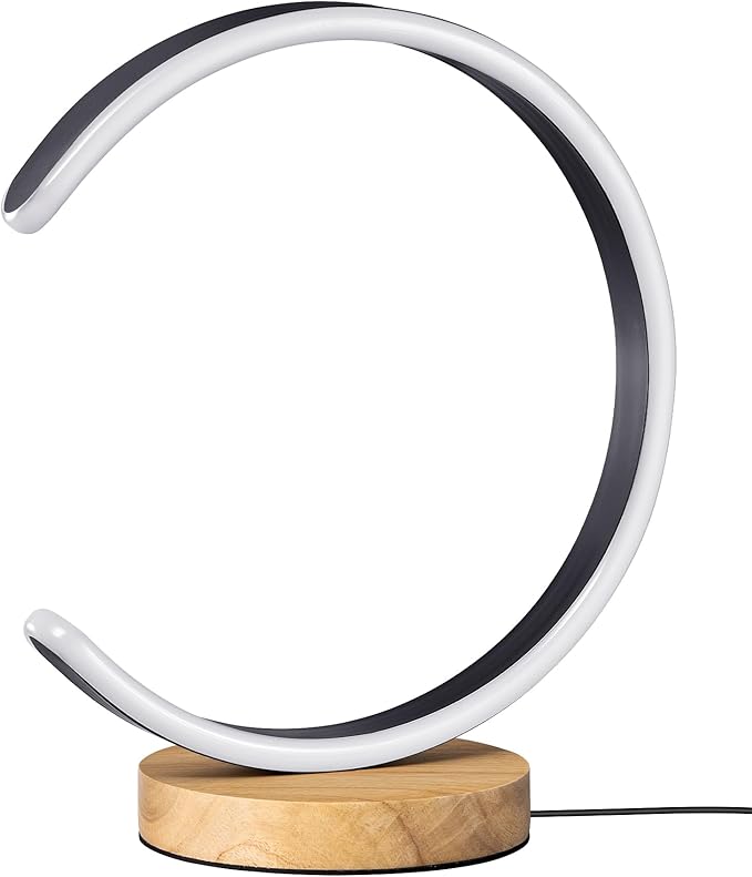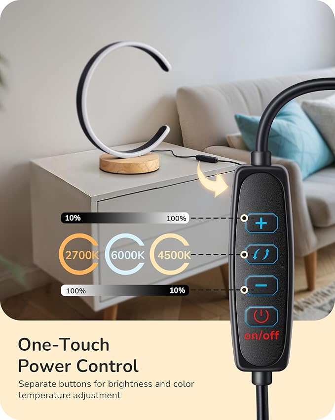 - [C-Shaped Modern Frame] Featuring a natural wood base and a black C-shaped aluminum frame, this bedside table lamp adds a sleek, contemporary touch to any space, perfect for bedrooms, living rooms, and more