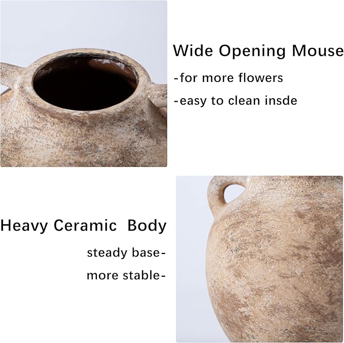 - 【Rustic Art Vase】 The surface of this porcelain vase is rough and the color is more like natural dirt and rock. This nice farmhouse vase can bring the beauty of nature into your home.
