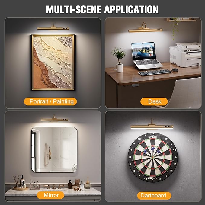 - Versatile Use: These poster lights are ideal for 10–30 inch wall art. Suitable for paintings, portraits, dartboards, or mirrors, they deliver soft, even lighting that highlights details and adds artistic flair to any space