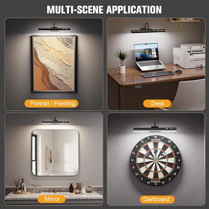 - Versatile Use: These poster lights are ideal for 10–30 inch wall art. Suitable for paintings, portraits, dartboards, or mirrors, they deliver soft, even lighting that highlights details and adds artistic flair to any space
