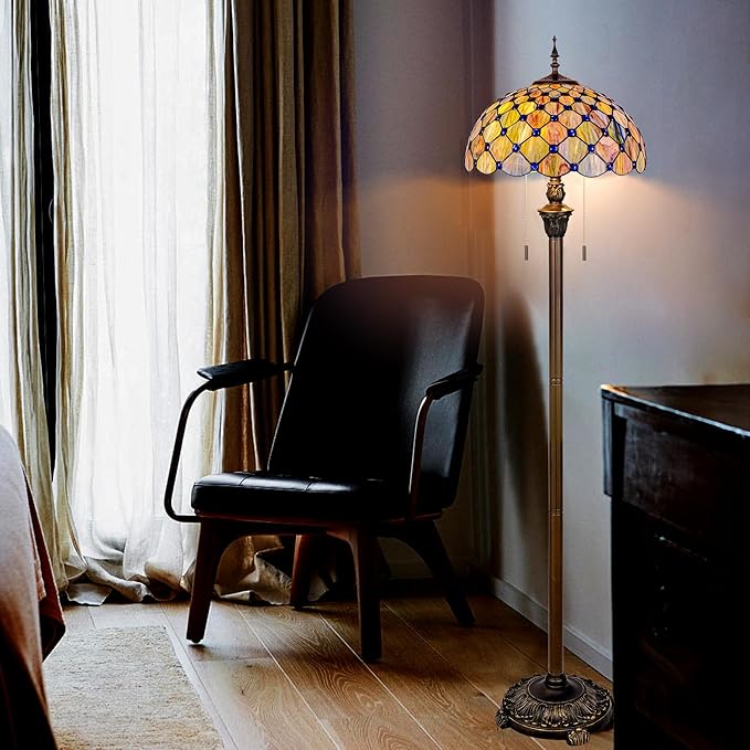 Tiffany Floor Lamp Stained Glass Pearls Beads Standing Reading Light 16x16x64 Inch Retro Inspired Pole Corner Lighting Art Decor for Bedroom Living Room Home Office (Gradient Green)