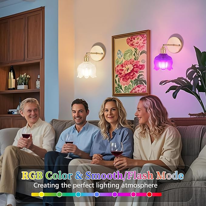 - 【Widely Application】The glass flower wall sconce is great for home indoor decoration to create a touch of brilliance to your residence, which is an excellent idea for your bathroom Bedroom mirror kitchen,dining room,living room, corridor,cafe,basement,bar,club,office,and library