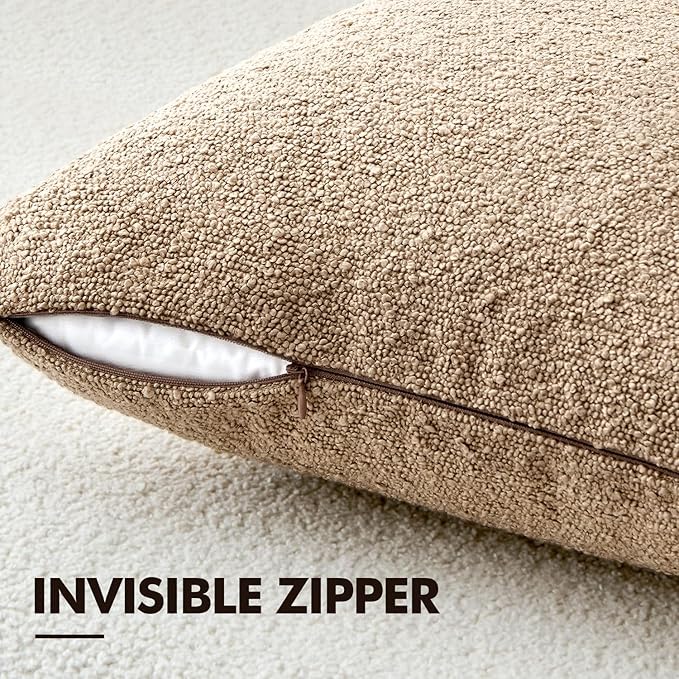 - Premium Quality Fabric:Crafted from high-quality 100% polyester with a boucle texture, these pillow covers are both durable and luxurious, featuring a thick weave. Soft to the touch, they are machine washable and resistant to fading