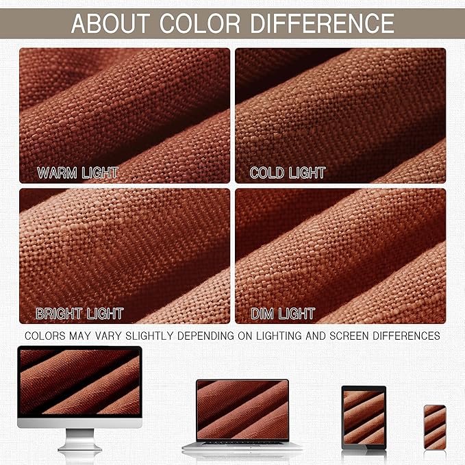 - 【Effortless Care】The linen curtains is machine washable in cold water. Avoid using bleach to preserve the drapes color and integrity. After washing, tumble dry on a low setting to prevent excessive wrinkling or shrinking. If necessary, iron on a low-heat setting to smooth out any remaining wrinkles. For good effect, remove the curtains promptly from the dryer and hang while still slightly damp. This will help maintain their shape and reduce the need for ironing.