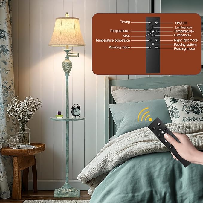 - Mutifunctional & 350° ADJUSTABLE SWING ARM – The brown floor lamp is 65 Inches Tall, which is the Ideal Height for Providing a Gentle Glow. It's simple to move the lamp to where it's required. Its extending arm enables you to change the length of the light.At the same time, there are stepless dimming and 3 color temperature switch, which can be easily controlled by remote control.