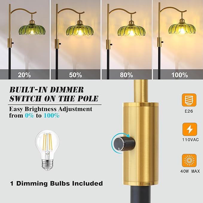 - 【Sturdy structure】The vintage dimmable floor lamp is made of a sturdy metal frame, paired with a convenient foot switch and a manual dimmer switch. The metal tabletop has an independent support tube, making it less likely to shake. It is equipped with an 11-inch marble base to ensure that the floor lamp is not prone to tilting. You can choose different wattage E26 Dimming bulbs for the living room lamps according to your need