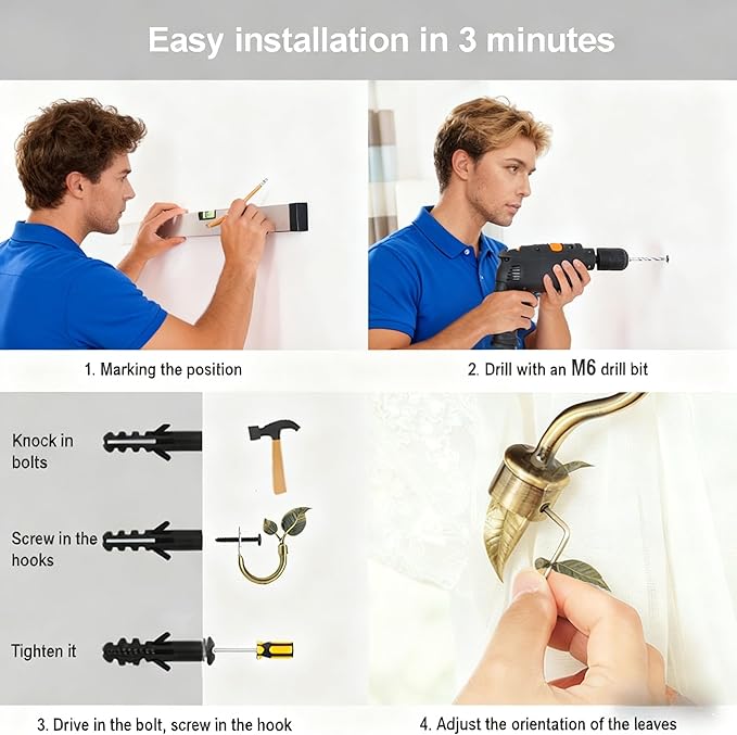 - **Secure & Universal Fit Installation** - Designed for lasting hold, our hardware includes all necessary screws and anchors for a sturdy mount on drywall, wood, or plaster. Fits most standard curtain rods and holds even heavy, layered curtains securely in place.