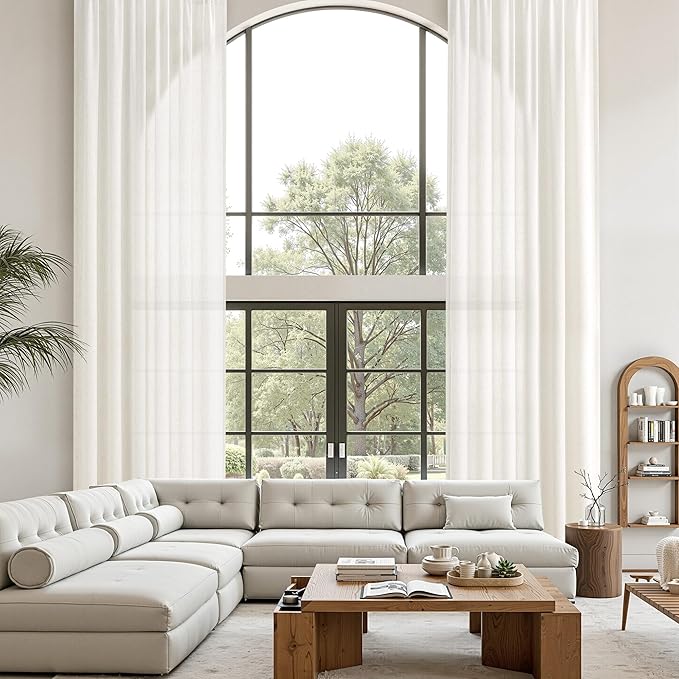 Guken Extra Long 168 Inches Curtains Linen Sheer Curtains Light Filtering Semi Sheer Linen Drapes Ceiling to Floor Loft High Ceiling Living Room Rod Pocket,Natural,W52xL168,2 Panels
