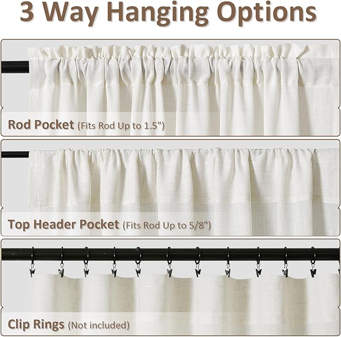 - Light Filtering & Airy: Beautifully frames your windows with a soft and hazy vision. Linen textured curtain draperies don't completely block the sunlight but gently filtering out harsh sunlight. The open weave lets in plenty of fresh air when you have the curtains closed but window open